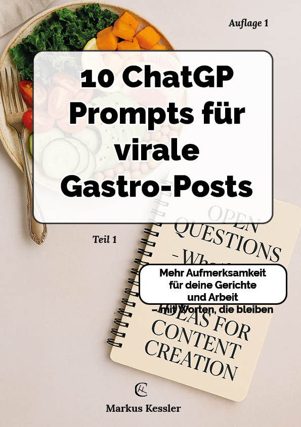 10 ChatGPT-Prompts für virale Gastro-Posts“ ist dein praktischer KI-Guide für mehr Reichweite, bessere Inhalte und weniger Stress im Gastro-Alltag.